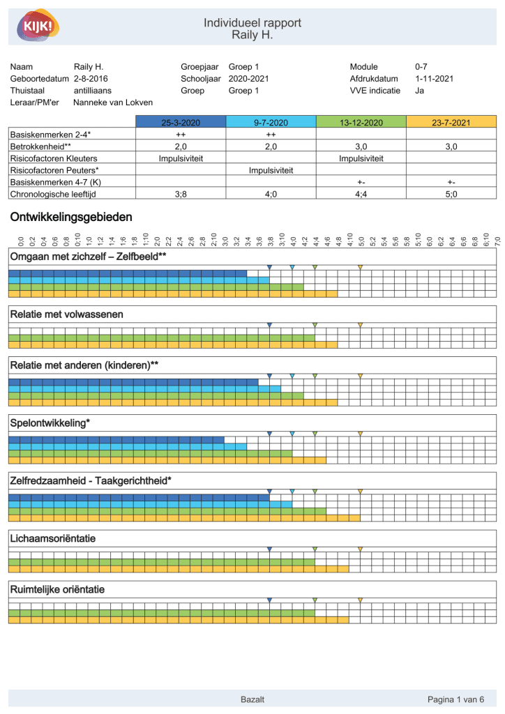 Na het afsluiten van je registratie wil je in één oogopslag zien of het kind voldoende ontwikkelgroei heeft doorgemaakt? Dat kan! Met het individuele rapport krijg je een prima beeld dat je gebruikt in gesprek met professionals. Voor ouders wil je hetzelfde: een heldere weergave van de groei die hun kind heeft doorgemaakt. Daarvoor ontwikkelden we het ouderrapport.