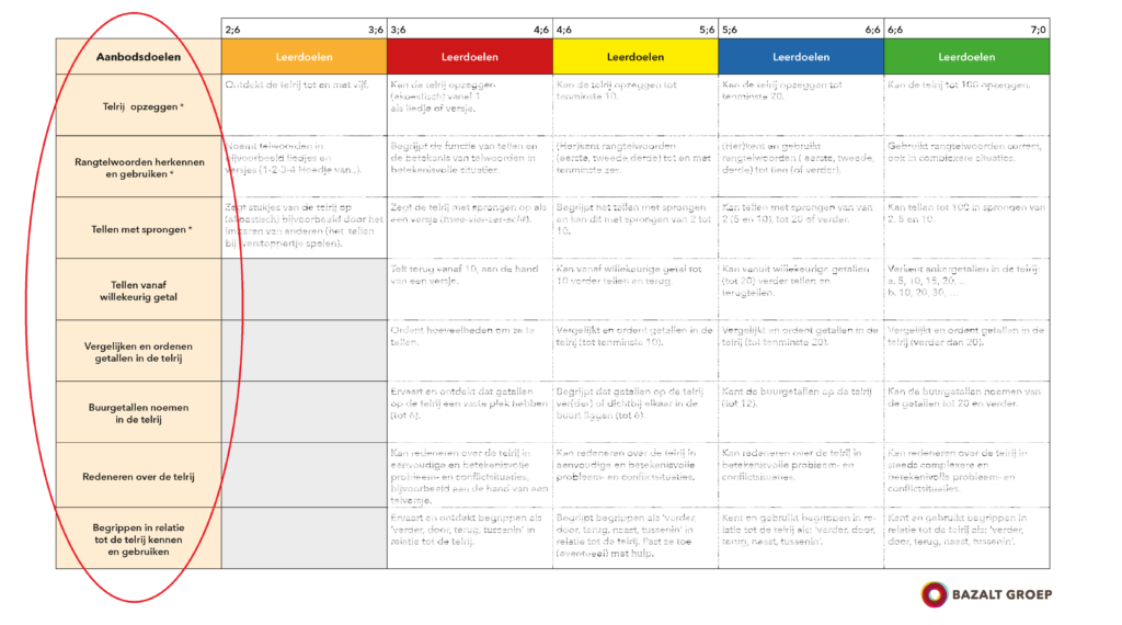 Aanbodsdoelen zijn de items die je in de meest linker kolom ziet staan in de doelenoverzichten. (documentatie>werkmaterialen>beredeneerd aanbod>doelen)